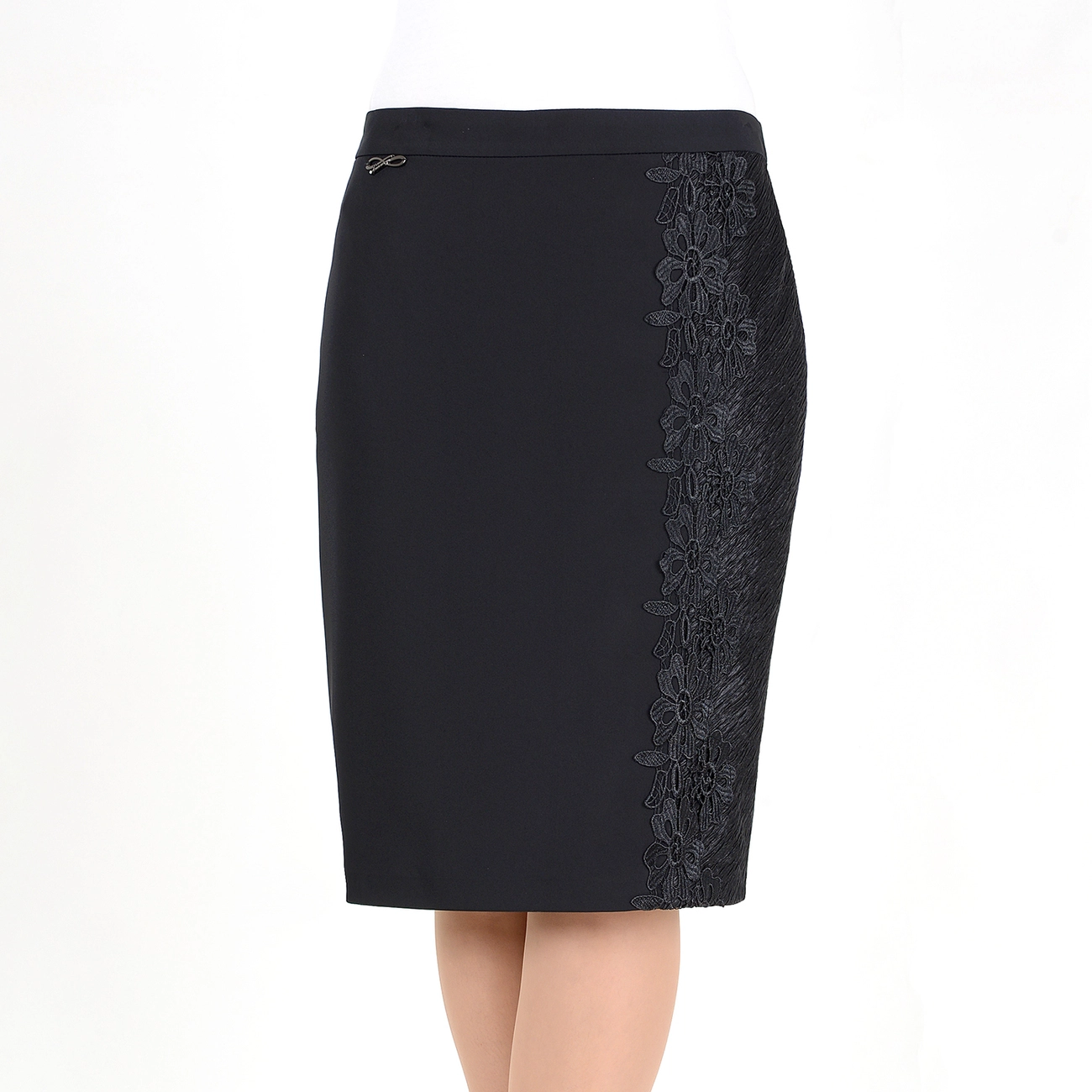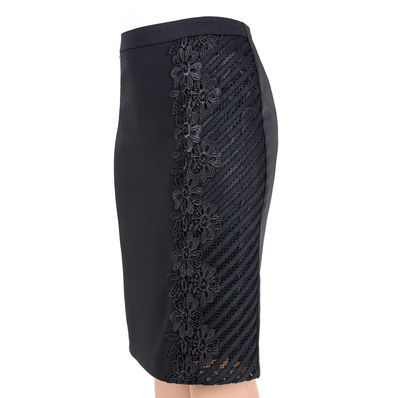 Эффектная юбка-карандаш с отделкой сбоку в виде кружевной вставки по всей длине. Идеально дополнит как повседневный, так и праздничный образ. |