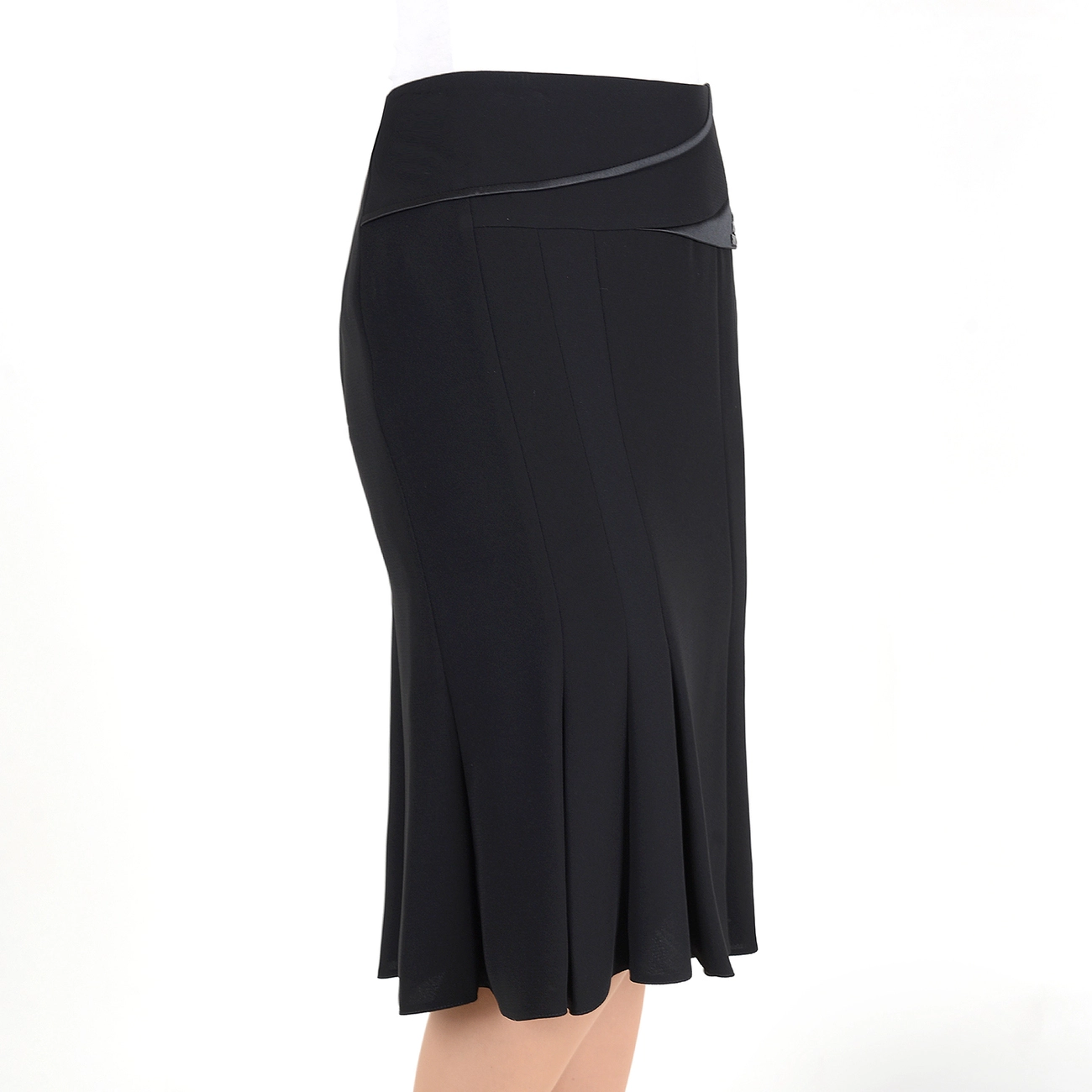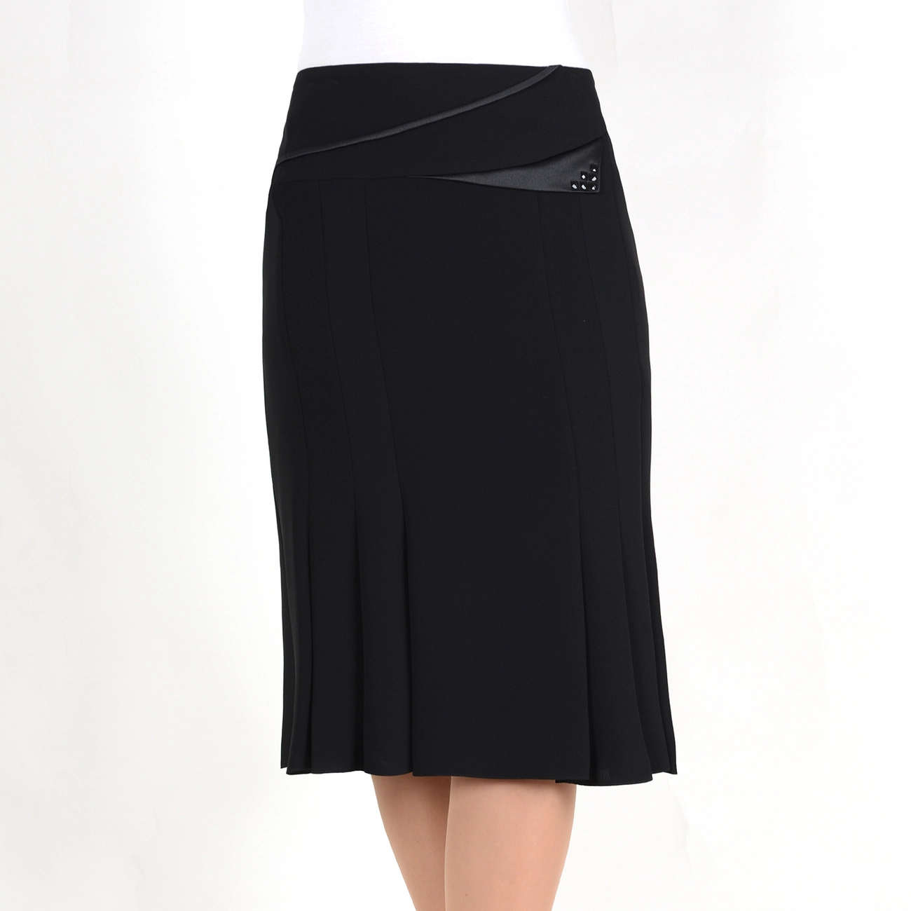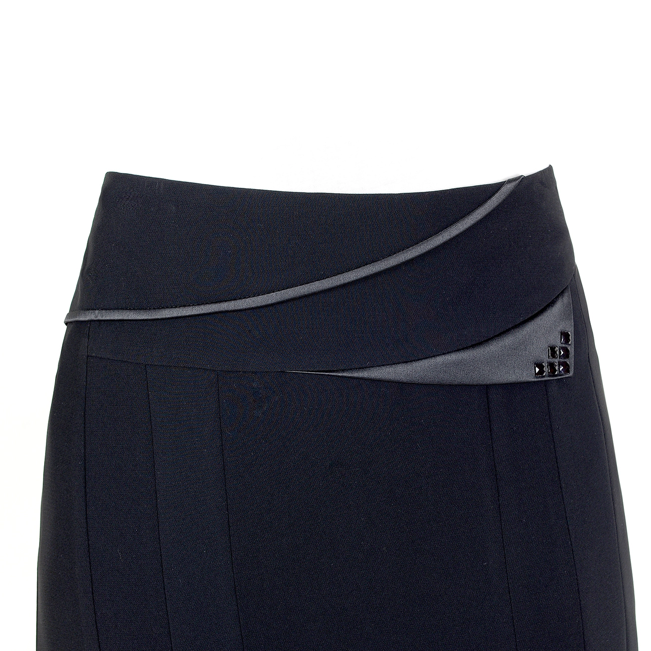 Юбка-годэ со сложным кроем и отделкой по кокетке в виде клапана, украшенного камнями. Это стильная и элегантная модель идеально дополнит Ваш гардероб. |