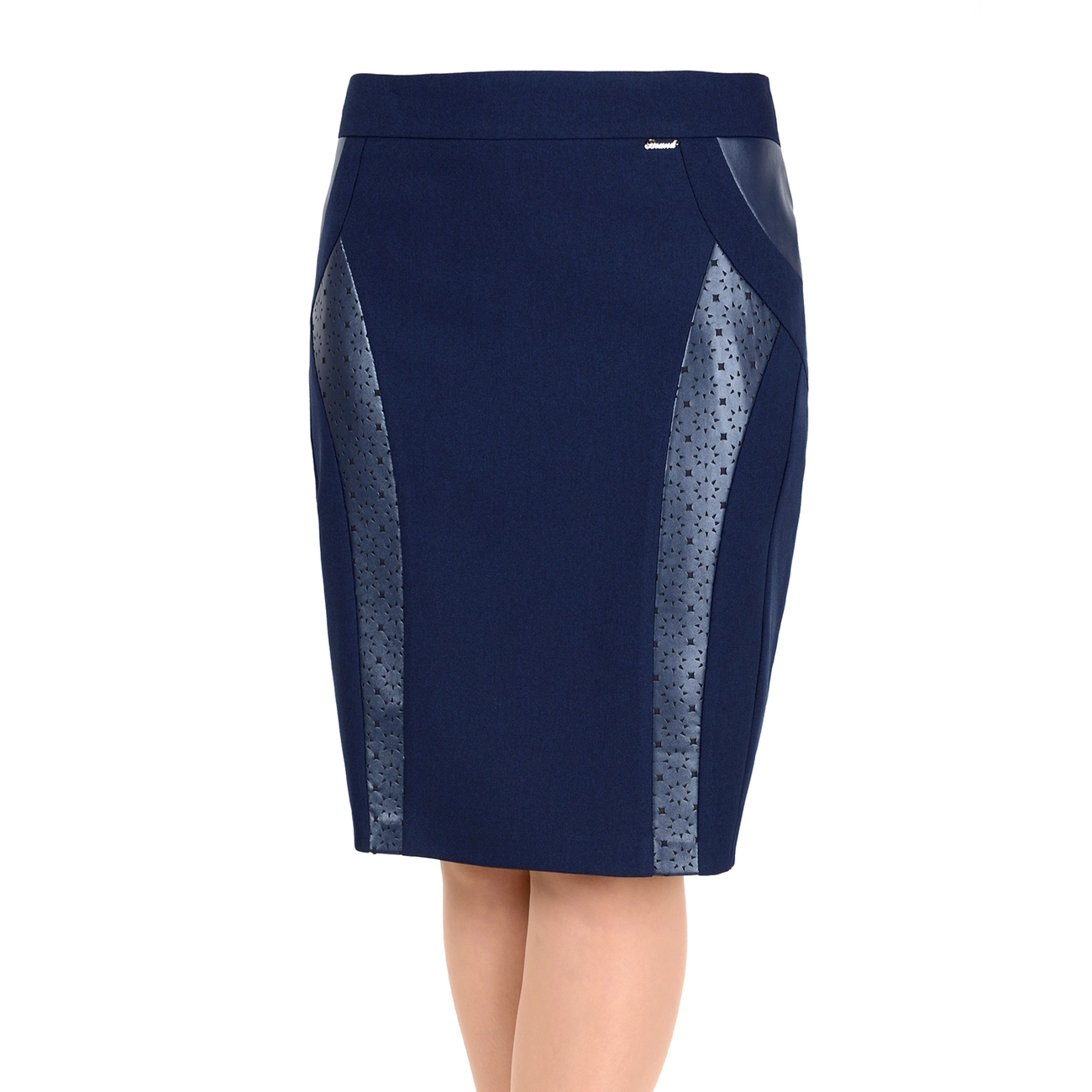 Классическая юбка-карандаш со вставками из искусственной кожи. Эта модель дополнит модный и современный образ. |