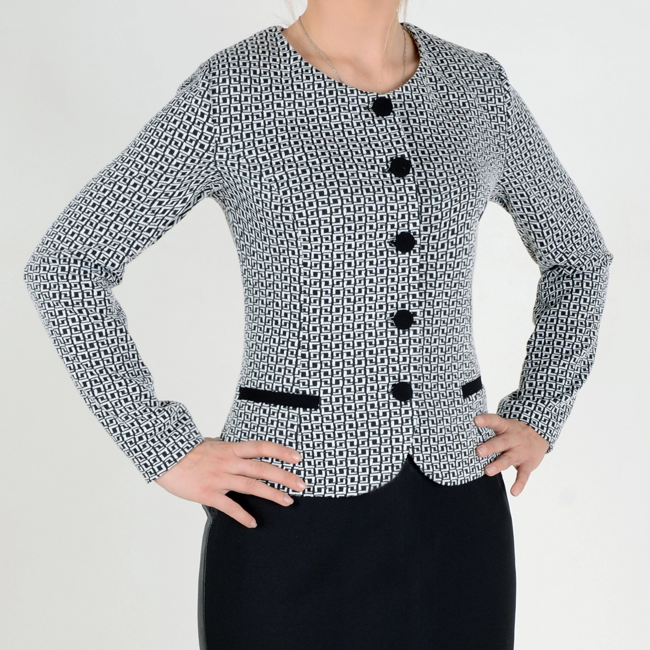 Классический и элегантный пиджак из плотного трикотажа. Прекрасное дополнение для любого образа. |